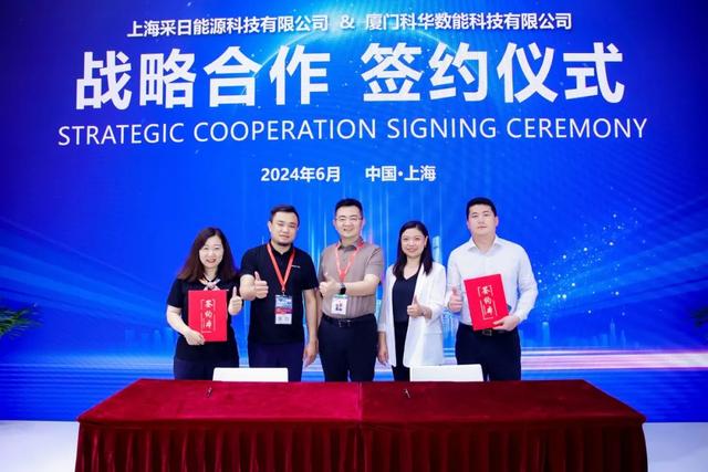 展會期間,在眾多嘉賓和行業(yè)同仁的見證下,采日能源分別與深圳市盛弘電氣股份有限公司、廈門科華數(shù)能科技有限公司達成了戰(zhàn)略合作意向,并簽署了相關(guān)協(xié)議。