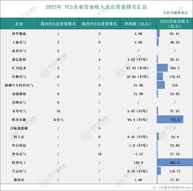 2023年度,海外市場(chǎng)中,儲(chǔ)能PCS出貨量排名前十位的中國(guó)企業(yè),依次為:陽(yáng)光電源、科華數(shù)能、南瑞繼保、盛弘股份、首航新能源、科士達(dá)、華自科技、上能電氣、株洲中車(chē)時(shí)代電氣和智光儲(chǔ)能。