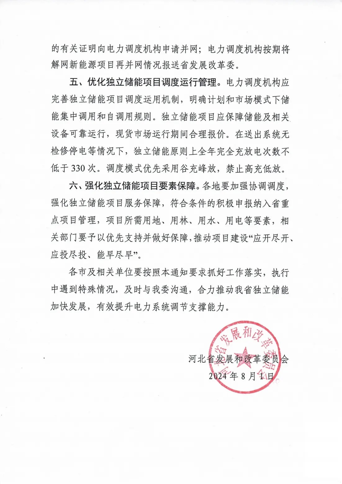 優(yōu)化獨立儲能項目調(diào)度運行管理。電力調(diào)度機構(gòu)應完善獨立儲能項目調(diào)度運用機制,明確計劃和市場模式下儲能集中調(diào)用和自調(diào)用規(guī)則。獨立儲能項目應保障儲能及相關(guān)設備可靠運行,現(xiàn)貨市場運行期間合理報價。在送出系統(tǒng)無檢修停電等情況下,獨立儲能原則上全年完全充放電次數(shù)不低于330次。調(diào)度模式優(yōu)先采用谷充峰放,禁止高充低放。