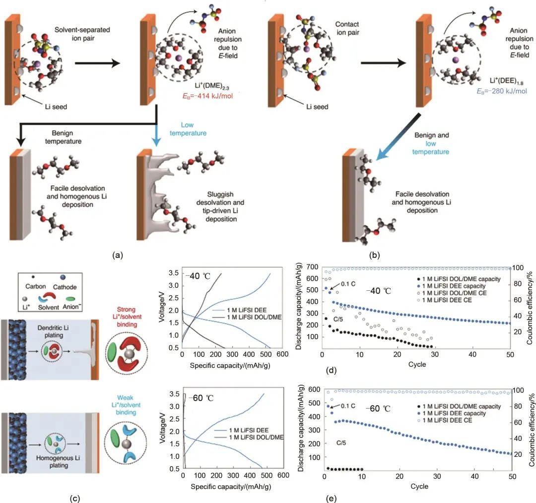 關(guān)鍵詞 鋰離子電池;鋰金屬電池;低溫;電解液;溶劑化結(jié)構(gòu)
