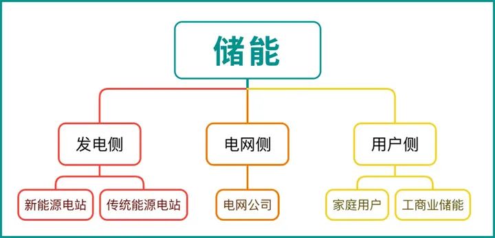 儲(chǔ)能按照應(yīng)用場(chǎng)景可以分為發(fā)電側(cè)儲(chǔ)能、電網(wǎng)側(cè)儲(chǔ)能、用戶側(cè)儲(chǔ)能。用戶側(cè)儲(chǔ)能又細(xì)分為工商業(yè)儲(chǔ)能與家庭儲(chǔ)能,兩者區(qū)別在于客戶群體。