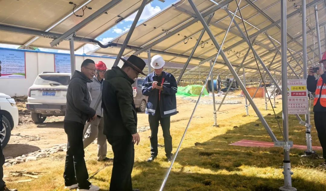 在伯托100MW光伏儲(chǔ)能項(xiàng)目現(xiàn)場(chǎng),李成統(tǒng)與國(guó)家電投山南電力公司負(fù)責(zé)人視頻連線,就加快施工進(jìn)度、謀劃延伸產(chǎn)業(yè)鏈、形成發(fā)展線等方面進(jìn)行交流。與現(xiàn)場(chǎng)負(fù)責(zé)人深入交談,實(shí)地查看項(xiàng)目進(jìn)展,詳細(xì)了解項(xiàng)目建設(shè)進(jìn)度、質(zhì)量管控、安全生產(chǎn)、生態(tài)環(huán)境等情況,現(xiàn)場(chǎng)協(xié)調(diào)解決項(xiàng)目建設(shè)過(guò)程中存在的困難和問(wèn)題。