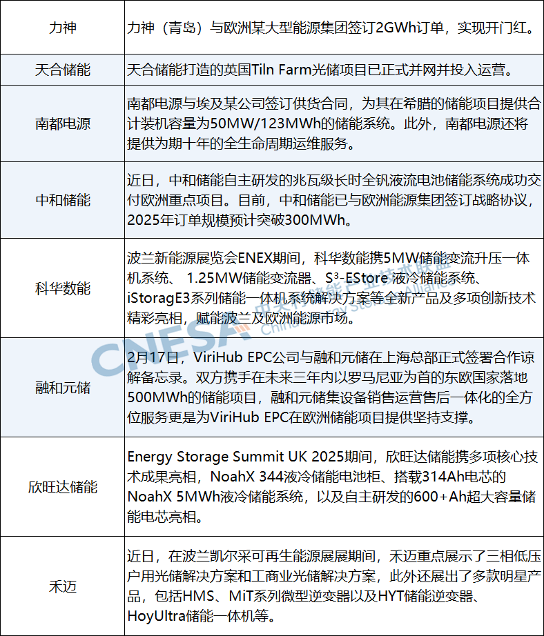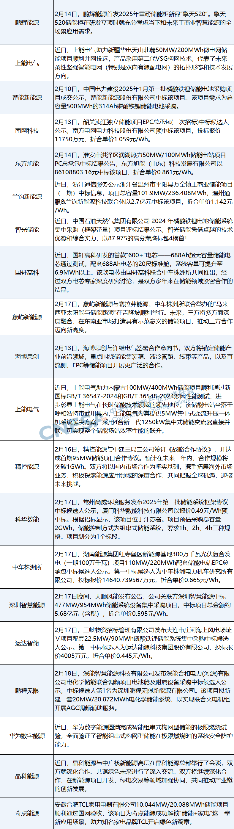 近兩周來(lái),楚能新能源、南網(wǎng)科技、中車株洲所、蘭鈞新能源、智光儲(chǔ)能、科華數(shù)能、運(yùn)達(dá)智儲(chǔ)、鵬程無(wú)限等企業(yè)中標(biāo)國(guó)內(nèi)儲(chǔ)能項(xiàng)目采購(gòu);上能電氣、奇點(diǎn)能源等項(xiàng)目順利并網(wǎng);華為數(shù)字能源圓滿完成智能組串式構(gòu)網(wǎng)型儲(chǔ)能的極限燃燒試驗(yàn);晶科能源與中廣核新能源深化了合作;鵬輝能源首發(fā)2025年工商業(yè)儲(chǔ)能柜新品“擎天520“;海博思創(chuàng)與許繼電氣錨定儲(chǔ)能產(chǎn)業(yè)前沿領(lǐng)域開(kāi)展廣泛合作等等,國(guó)內(nèi)市場(chǎng)在招中標(biāo)、戰(zhàn)略合作、新品發(fā)布等方面全面出擊。
