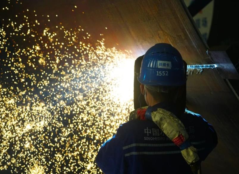 技術(shù)人員正在天臺(tái)抽蓄鋼管廠進(jìn)行焊接施工 攝影:彭宗衛(wèi)