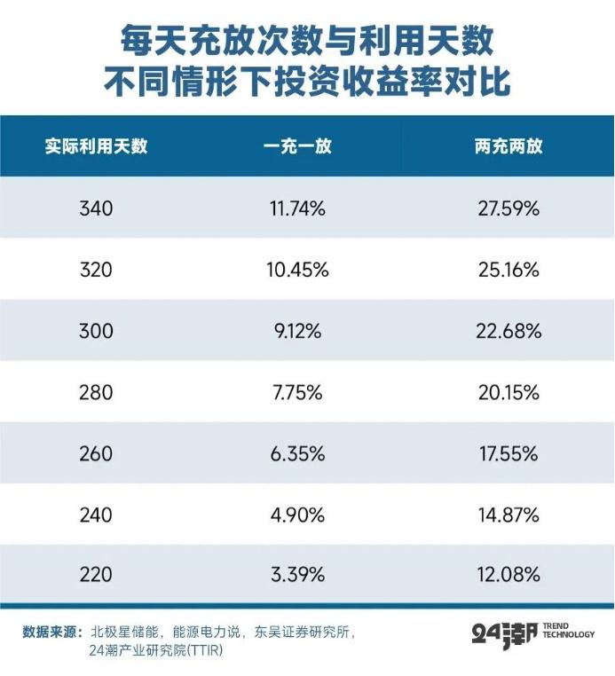 還需要注意的是,據(jù)東吳證券測算,工商儲實際應(yīng)用中收益率低于理論值,對工商業(yè)業(yè)主吸引力有限。工商儲單個項目功率較大,初始投資成本約上千萬元,此外分時電價政策變化的不確定性、若實際利用天數(shù)較低,收益率將打較大折扣,每天同一充放次數(shù)下,220天利用天數(shù)與340天利用天數(shù)可產(chǎn)生近2倍收益率差異??紤]目前實際利用是一充一放為主,280利用天數(shù)下IRR為7.75%。