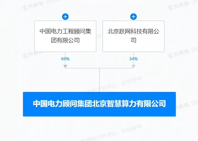 股權(quán)穿透顯示,該公司由中國(guó)能建旗下中國(guó)電力工程顧問集團(tuán)有限公司和北京躍網(wǎng)科技有限公司共同持股。