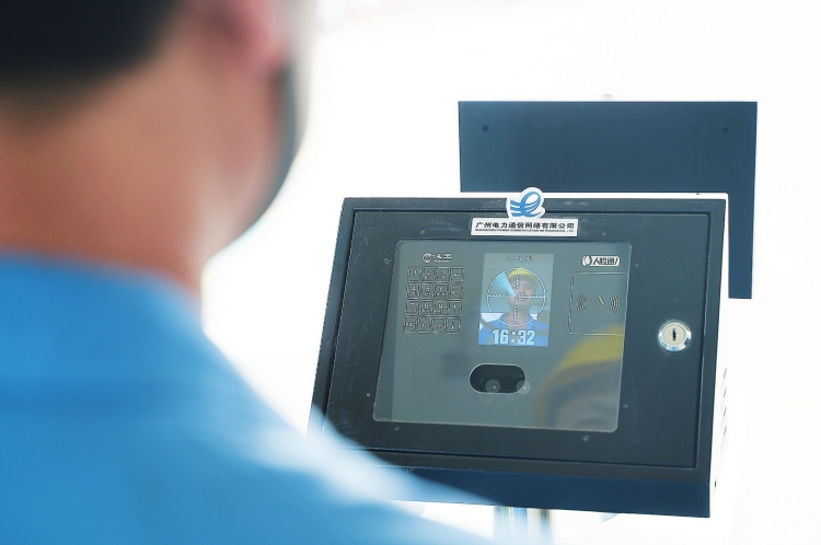 廣州供電局施工人員在“智慧工地”入口通過人臉識(shí)別入場。劉海寧 攝