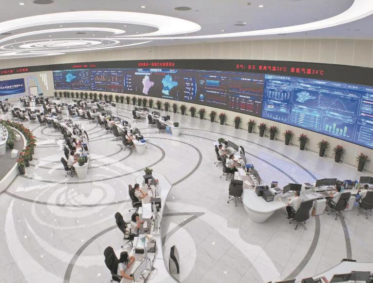 在陜西省西安市雁塔區(qū)未來產(chǎn)業(yè)城的未來人工智能計算中心監(jiān)控運(yùn)維室,工作人員通過智慧大屏監(jiān)測平臺運(yùn)行情況。 新華社記者 張曼怡 攝