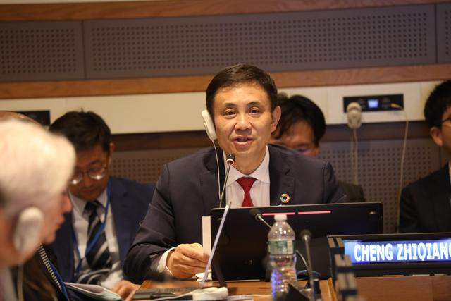 當?shù)貢r間7月13日,聯(lián)合國可持續(xù)發(fā)展高級別政治論壇能源主題邊會在紐約聯(lián)合國總部舉行,邊會由合作組織合作總監(jiān)程志強主持。(合作組織供圖)