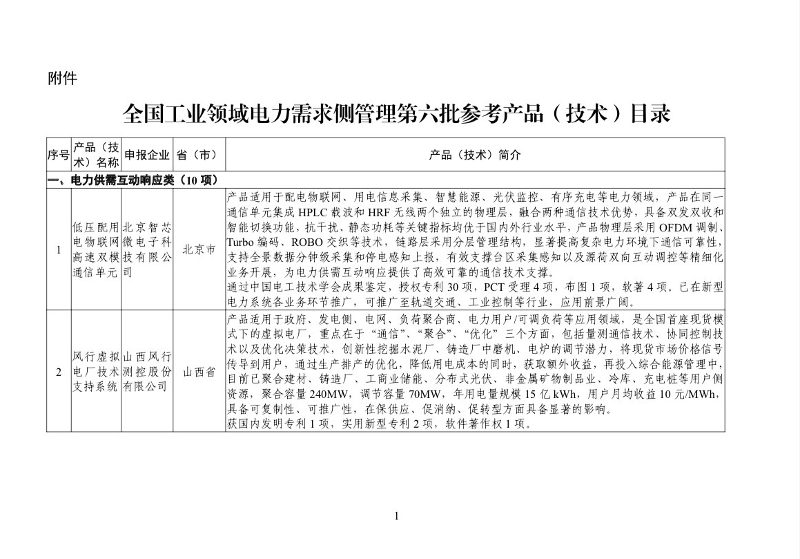 附件:全國工業(yè)領(lǐng)域電力需求側(cè)管理第六批參考產(chǎn)品(技術(shù))目錄