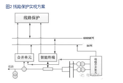 如圖2為220kV線路單套保護網(wǎng)絡(luò)結(jié)構(gòu)圖,保護裝置與合并單元和智能終端為“直采直跳”模式,保護裝置直接從合并單元接收SV采集信號,從智能終端獲取刀閘和開關(guān)的位置,并直接向智能終端發(fā)出跳合閘命令。