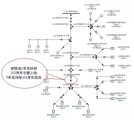 1)2015年7月24日18∶00合上賽上線5號環(huán)網(wǎng)柜102開關(guān),斷開香堤線3號環(huán)網(wǎng)柜101開關(guān),(從所街變香堤線轉(zhuǎn)移約3850kVA居民負(fù)荷至沙洲變?nèi)暇€);
