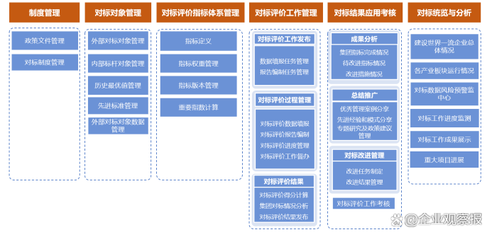 一是形成集團(tuán)世界一流企業(yè)對(duì)標(biāo)工作一體化管理。通過(guò)平臺(tái)應(yīng)用,建立形成了集團(tuán)世界一流企業(yè)對(duì)標(biāo)評(píng)價(jià)的一體化管理平臺(tái),實(shí)現(xiàn)了對(duì)標(biāo)目標(biāo)、對(duì)標(biāo)指標(biāo)體系持續(xù)優(yōu)化,實(shí)現(xiàn)對(duì)標(biāo)工作“用戶管理、業(yè)務(wù)運(yùn)轉(zhuǎn)、數(shù)據(jù)管理、結(jié)果應(yīng)用、評(píng)價(jià)考核、持續(xù)改進(jìn)”六個(gè)全面在線,更好地發(fā)揮對(duì)標(biāo)對(duì)世界一流企業(yè)建設(shè)的重要支撐作用。