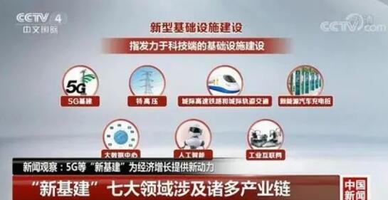 據(jù)央視新聞指出,“新基建”的范圍主要指發(fā)力于科技端的基礎(chǔ)設(shè)施建設(shè),包含5G基建、特高壓、城際高速鐵路和城際軌道交通、新能源汽車充電樁、大數(shù)據(jù)中心、人工智能、工業(yè)互聯(lián)網(wǎng)七大領(lǐng)域,涉及到通信、電力、交通、數(shù)字等多個(gè)社會民生重點(diǎn)行業(yè)。