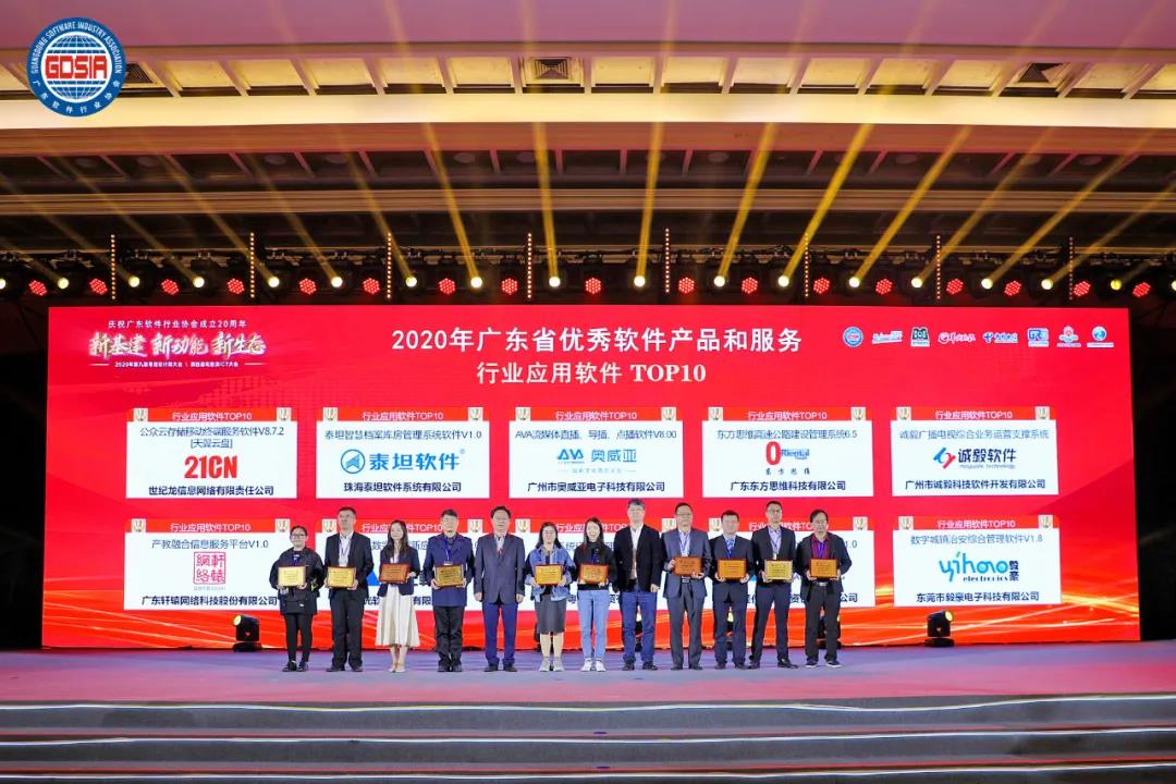 2020年廣東省優(yōu)秀軟件產(chǎn)品和服務行業(yè)應用軟件TOP10
