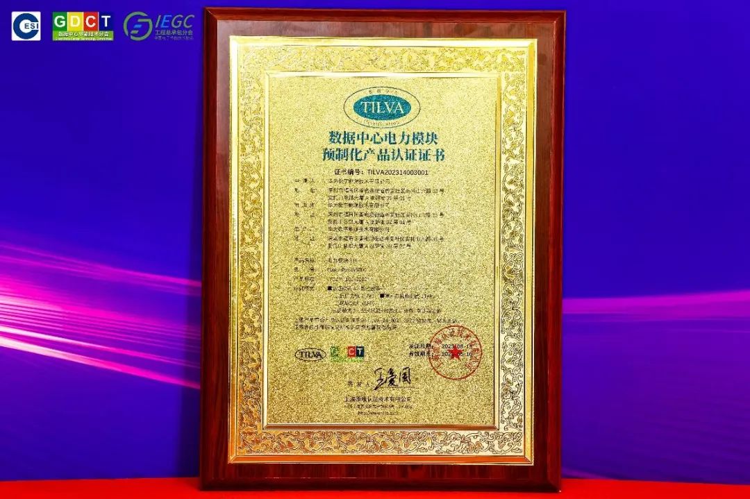 業(yè)界首個“數(shù)據(jù)中心電力模塊預制化產(chǎn)品認證”證書