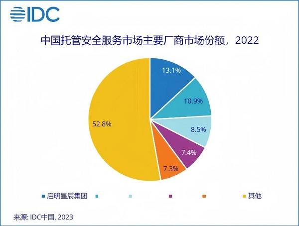 近日,IDC發(fā)布《中國托管安全服務(wù)(駐場、遠程、云托管)市場份額,2022》報告。報告顯示,啟明星辰集團以13.1%的市場份額穩(wěn)居托管安全服務(wù)整體市場第一,以17.7%的市場份額穩(wěn)居駐場托管安全服務(wù)子市場第一。