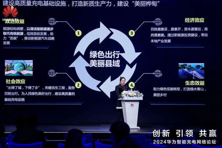 吉林省源達新能源有限公司總經(jīng)理劉丹丹發(fā)表了主題演講,探討了“構建縣域高質量充電基礎設施,打造新質生產(chǎn)力,助力新能源汽車下鄉(xiāng)”的重要性。