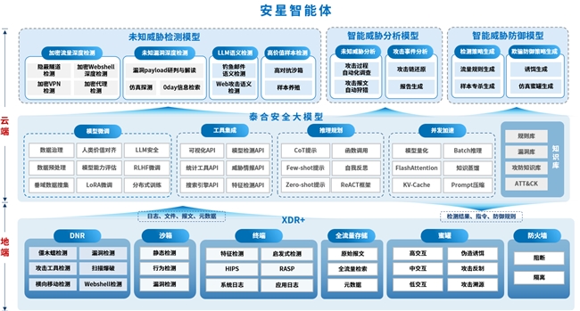 在威脅檢測(cè)層面,安星智能體利用大模型的環(huán)境感知、意圖理解和工具調(diào)用能力,智能化調(diào)度各種檢測(cè)工具和算法,大小模型協(xié)同應(yīng)用,將AI能力融入到威脅檢測(cè)與響應(yīng)的每個(gè)環(huán)節(jié),大幅提升威脅檢測(cè)的應(yīng)對(duì)能力和反應(yīng)速度。