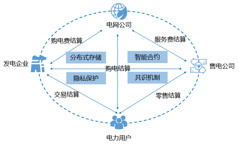 市場(chǎng)化的電費(fèi)結(jié)算是能源交易的核心業(yè)務(wù),我國(guó)的電費(fèi)結(jié)算技術(shù)開(kāi)始于1960年,隨后被廣泛應(yīng)用于各行各業(yè)。目前,我國(guó)普遍采取“預(yù)購(gòu)電”方式結(jié)算電費(fèi),但這種模式對(duì)分布式新能源接入等多種新場(chǎng)景,存在能量流、信息流不統(tǒng)一,交易流程長(zhǎng)、響應(yīng)不及時(shí)、合同履約難掌控、信用體系難建立等問(wèn)題。