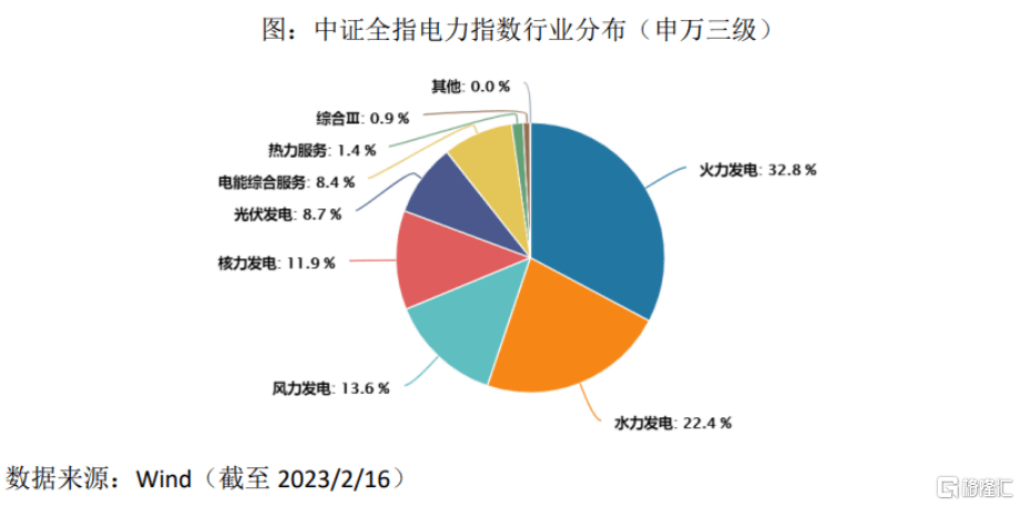就細(xì)分行業(yè)分布來看,該指數(shù)成分股集中于電力行業(yè),重點(diǎn)關(guān)注火電、水電、新能源發(fā)電,并共同捕捉傳統(tǒng)發(fā)電和新能源發(fā)電領(lǐng)域的投資機(jī)會。其中,以權(quán)重最大的成分股長江電力(600900.SH)為例,火電占比達(dá)32.8%,水電占22%,風(fēng)電占13%,光伏占比不到10%。