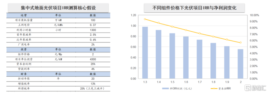 伴隨以核心原材料價(jià)格下行以及規(guī)模效應(yīng)下的成本持續(xù)下降,將導(dǎo)致新能源項(xiàng)目的收益率也會逐步提升。例如,下圖中的光伏項(xiàng)目的IRR(內(nèi)部收益率)預(yù)計(jì)從5.6%提高到7.6%,提高了2個(gè)百分點(diǎn)。隨著利潤率的提高用于投資這方面,投資者就會更多的增加,由于規(guī)模集約效應(yīng),成本又會增加,是良性循環(huán)的一個(gè)機(jī)制。