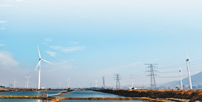 位于福建省莆田市平海灣的風力發(fā)電場。