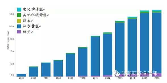 圖3?2005~2016年全球各儲能技術(shù)裝機情況