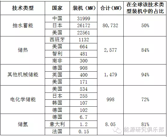 表2 全球各類型儲能技術(shù)主要裝機國家