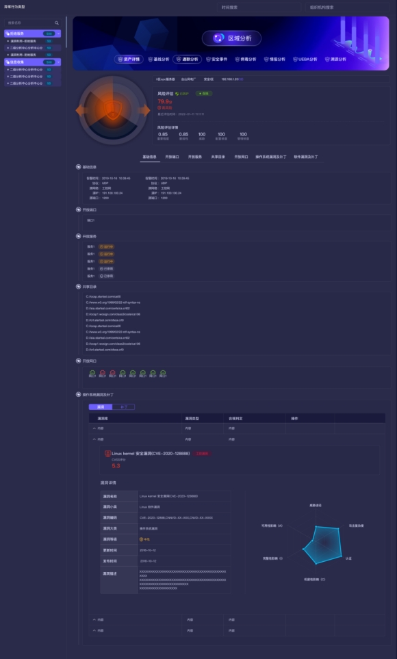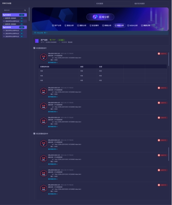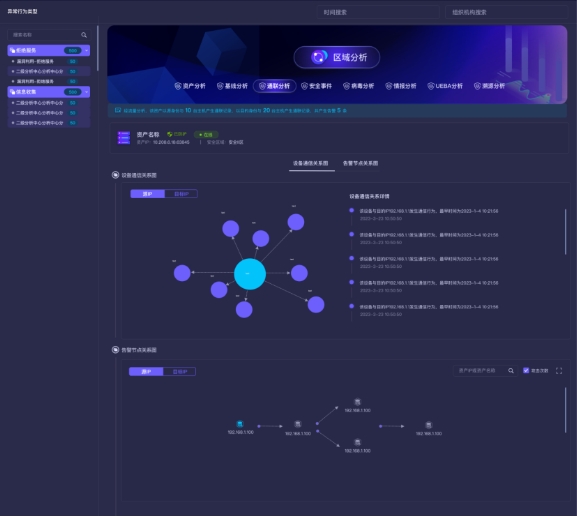 長揚態(tài)感網(wǎng)絡(luò)空間安全分析功能以資產(chǎn)為核心,從區(qū)域、聯(lián)通性、病毒、情報、漏洞、基線、溯源、UEBA行為等多個方面進行全方位、立體化分析。