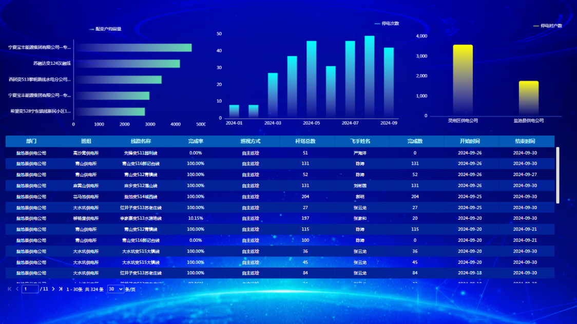 隨著寧東公司配網(wǎng)專業(yè)PC端及移動端看板上線,業(yè)務(wù)人員以往通過系統(tǒng)取數(shù)后手動計算的數(shù)據(jù),如“配變戶均容量”、“停電時戶數(shù)”等,均可從場景直接獲取;需跨系統(tǒng)查看的內(nèi)容,如“配變與線路停電信息及涉及用戶明細(xì)”、“無人機(jī)飛手任務(wù)完成情況”等,都已在場景直觀展示出來,大大提升工作效率。