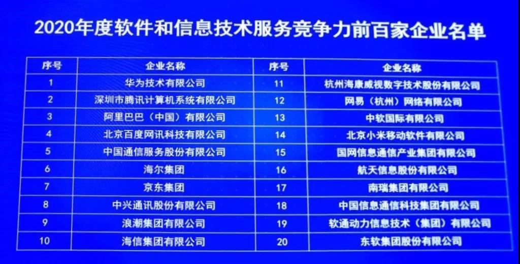 2020年度軟件和信息技術(shù)服務(wù)企業(yè)競(jìng)爭(zhēng)力百?gòu)?qiáng)榜單揭曉,國(guó)網(wǎng)信通產(chǎn)業(yè)集團(tuán)榮登第十五位