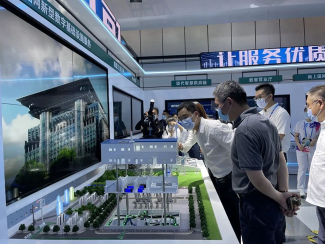 國網(wǎng)信通產(chǎn)業(yè)集團工作人員介紹國網(wǎng)新型數(shù)字基礎設施服務。