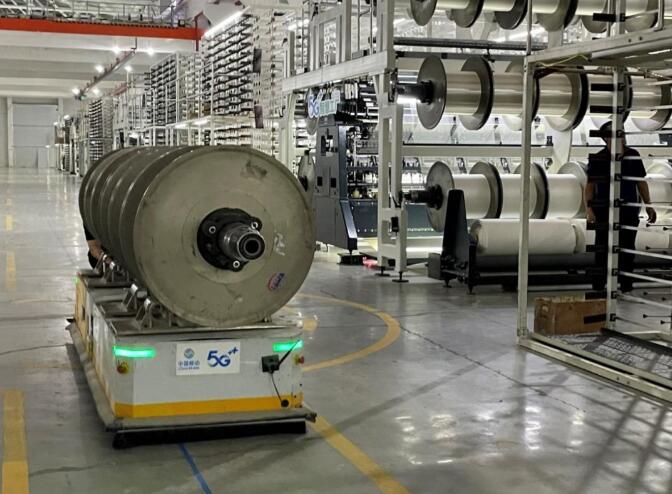 5G+AGV自動接單、無人搬運、自動運輸,助力紡織工廠高效不間斷生產(chǎn)。