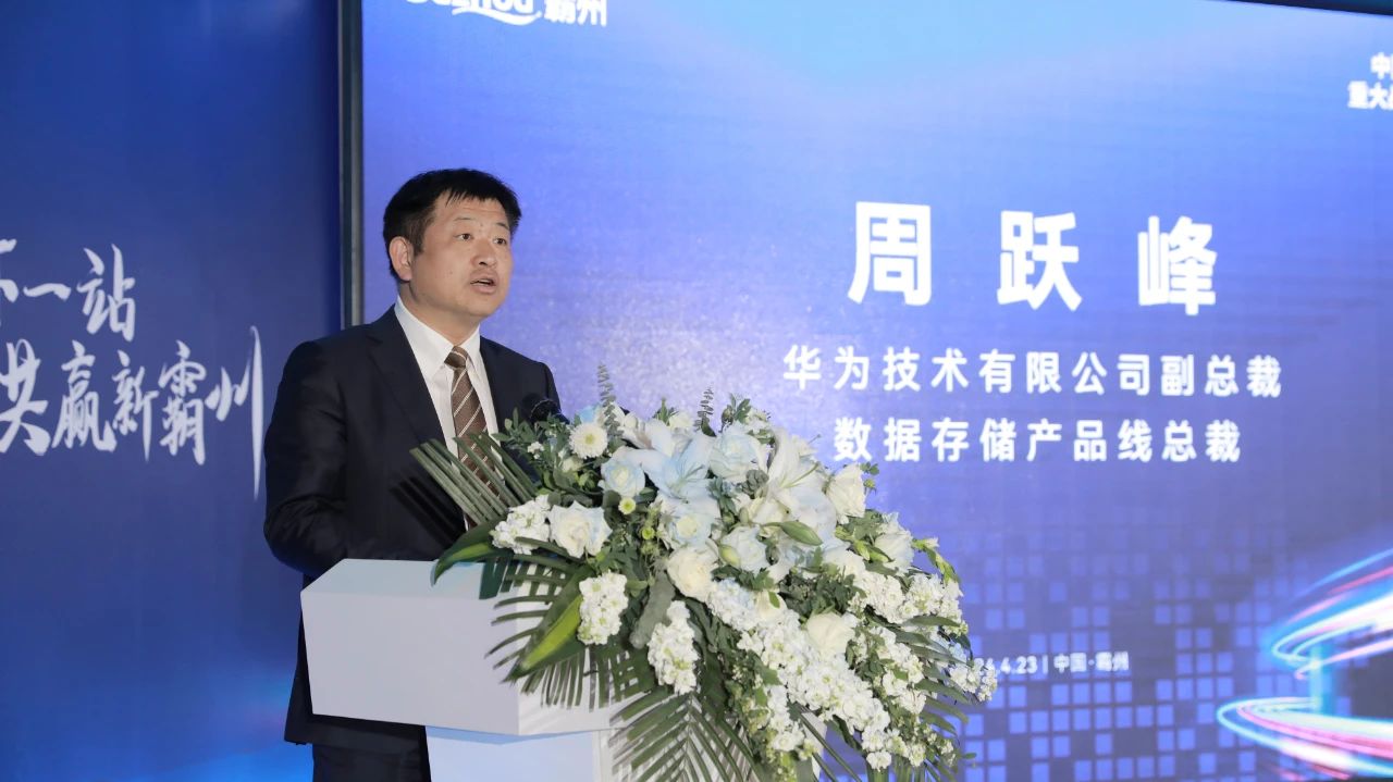 簽約儀式前,霸州市政府市長(zhǎng)張淼介紹項(xiàng)目情況,華為公司副總裁、數(shù)據(jù)存儲(chǔ)產(chǎn)品線總裁周躍峰發(fā)言。