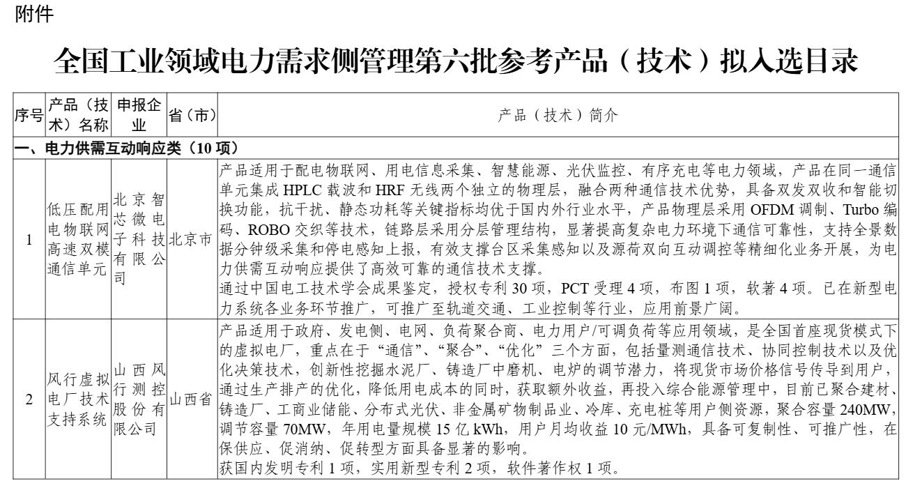 附件:全國工業(yè)領(lǐng)域電力需求側(cè)管理第六批參考產(chǎn)品(技術(shù))擬入選目錄
