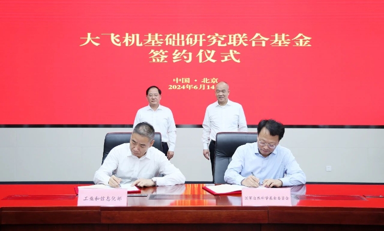 6月14日,工業(yè)和信息化部、國家自然科學(xué)基金委員會(huì)簽署合作協(xié)議,共同設(shè)立大飛機(jī)基礎(chǔ)研究聯(lián)合基金。工業(yè)和信息化部黨組書記、部長金壯龍,國家自然科學(xué)基金委員會(huì)黨組書記、主任竇賢康,工業(yè)和信息化部黨組成員、副部長辛國斌,國家自然科學(xué)基金委員會(huì)黨組成員、副主任王希勤出席活動(dòng)。