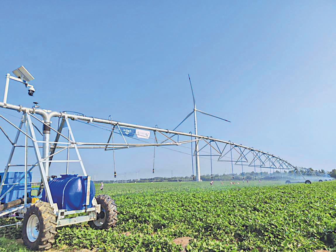 在延津縣,萬畝高標準農(nóng)田里的夏玉米已進入灌漿期,該階段澆水增肥是增加產(chǎn)量、保障豐產(chǎn)豐收的關鍵。在塔鋪街道大柳樹村的高標準農(nóng)田里,幾十米寬的大型平移式噴灌機似巨鳥展翅,在田間緩緩移動,“羽翼”下的幾十個噴頭噴出均勻的“水霧墻”,滋潤著莊稼,讓玉米“吃飽喝足”。中國移動5G水肥一體化智能灌溉技術將灌溉和施肥兩個農(nóng)業(yè)生產(chǎn)過程融合在一起,不僅實現(xiàn)了澆地向澆苗轉變,還能將水連同肥料直接輸送到玉米地里,讓玉米“渴”了就“喝”、“餓”了就“吃”,實現(xiàn)了對農(nóng)田水分和養(yǎng)分的綜合管理。