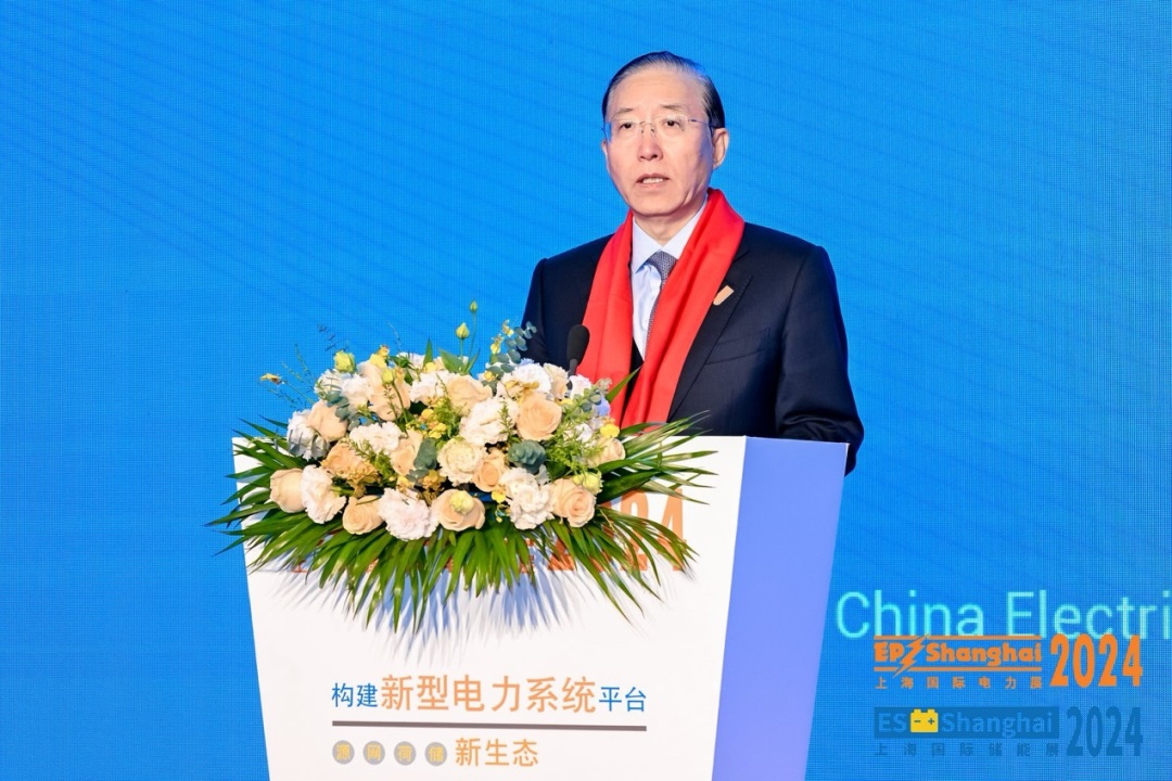 中國電力企業(yè)聯(lián)合會理事長、全球能源互聯(lián)網(wǎng)發(fā)展合作組織主席辛保安致辭。