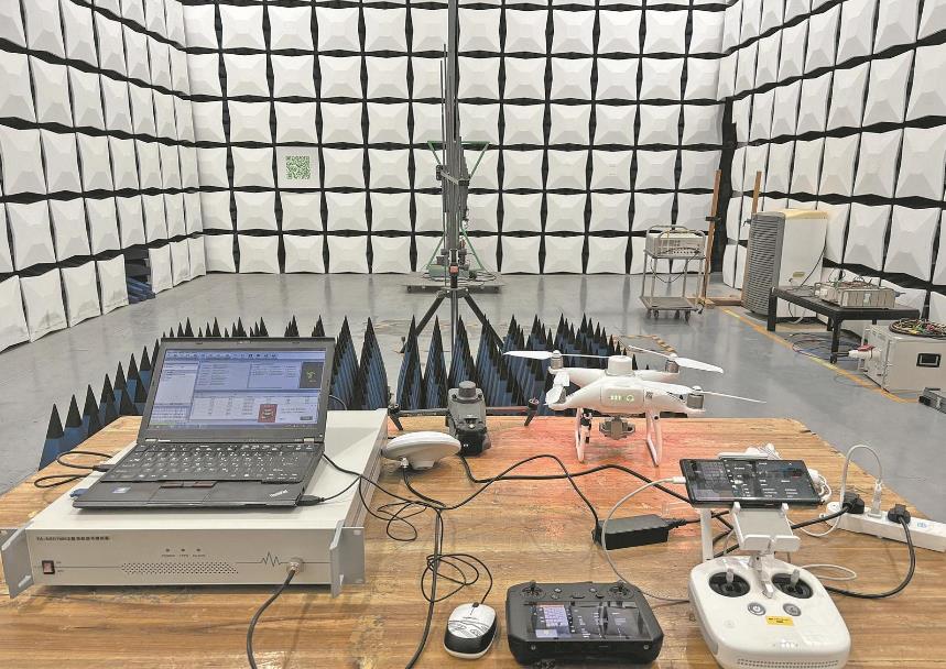 無(wú)人機(jī)電磁兼容試驗(yàn)現(xiàn)場(chǎng)。