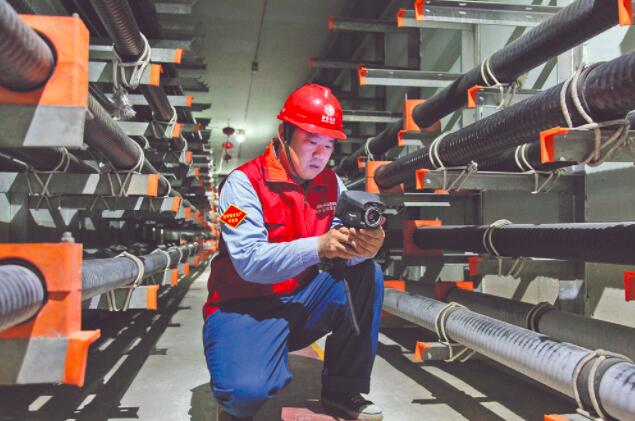 5月16日,在山西省太原市環(huán)湖東路電纜隧道內(nèi),太原供電公司運維專業(yè)員工檢查防有毒有害氣體措施是否到位。自4月開展專業(yè)領(lǐng)域安全隱患大排查大整治行動以來,太原供電公司已完成13條一級通道、15條輸配電纜溝、10條密集通道及12條重要線路通道的“六防”(防外力破壞、防火、防水、防過熱、防附屬設備異常、防有害氣體)治理。
