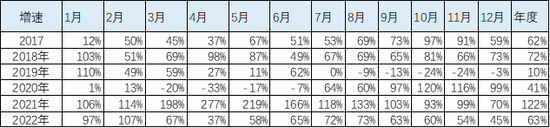 2022年新能源車的銷量增速超強(qiáng)起步,1-2月保持倍增的高速增長(zhǎng),3-5月增速偏低,6-12月的增速是逐步改善的。