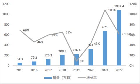 2015-2022 年全球新能源汽車銷量及增長(zhǎng)率