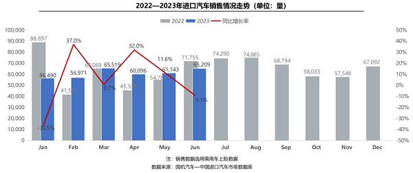 國機汽車分析稱,6月銷量同比下滑,主要受去年同期疫情影響下的低基數(shù)效應(yīng)淡出影響,疊加中央及地方促消費政策不斷加碼,進一步加速釋放了新能源汽車的消費需求,側(cè)面影響了以燃油車為主的進口乘用車的市場需求。環(huán)比增長,則主要是6月迎來618大促及端午節(jié)雙重效應(yīng),疊加廠家及經(jīng)銷商半年度節(jié)點沖量任務(wù)指標(biāo)以及部分主流品牌限量版的推出,帶動銷量環(huán)比增長。