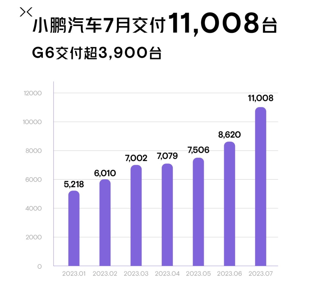 7月,小鵬汽車共交付新車11008輛,環(huán)比增長28%,不僅連續(xù)六個(gè)月實(shí)現(xiàn)了正增長,且月銷量終于重回萬輛大關(guān)。