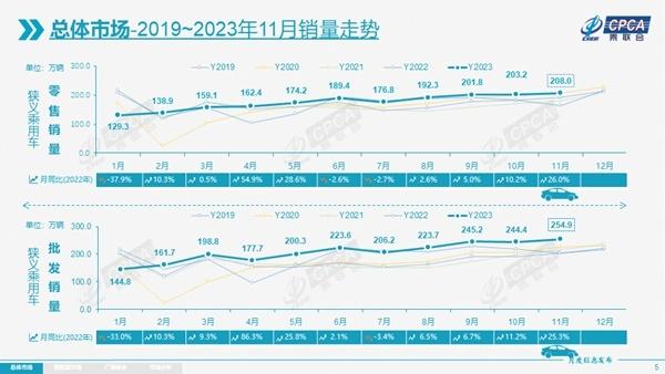 展望12月,共有21個(gè)工作日,較上一年減少一天,考慮到元旦假期因素,乘聯(lián)會(huì)預(yù)計(jì)年內(nèi)部分銷量將轉(zhuǎn)結(jié)至2024年兌現(xiàn)。同時(shí),1-11月乘用車市場(chǎng)表現(xiàn)顯著好于預(yù)期,全年銷量再創(chuàng)歷史新高十拿九穩(wěn),因此車企年末的沖刺熱情不會(huì)很高。此外,今年受新能源車的持續(xù)走高助推,多月份表現(xiàn)出淡季不淡的特點(diǎn),但也令旺季難旺,整體走勢(shì)相對(duì)平穩(wěn)。加之新能源補(bǔ)貼措施退出,以及去年12月燃油車購(gòu)置稅優(yōu)惠結(jié)到期,因此今年12月消費(fèi)者購(gòu)買熱情將低于往年。