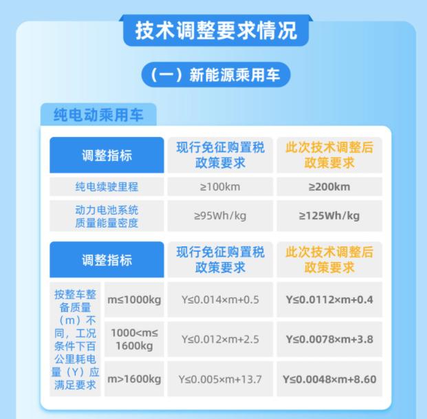 2023年12月11日,工信部、財(cái)政部、稅務(wù)總局三部門聯(lián)合發(fā)布《關(guān)于調(diào)整減免車輛購置稅新能源汽車產(chǎn)品技術(shù)要求的公告》(下稱12月最新公告),更新了享受減免車輛購置稅的新能源汽車產(chǎn)品的技術(shù)要求,提升了整車能耗、續(xù)駛里程等多項(xiàng)指標(biāo),明確了換電模式車型的相關(guān)要求。