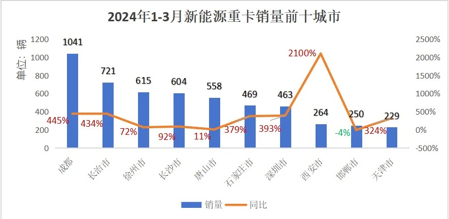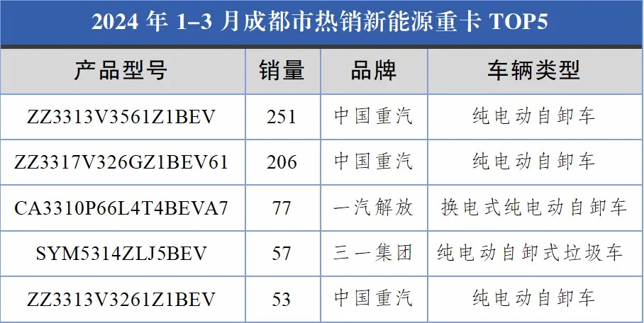 一季度成都新能源重卡銷售數(shù)量全國第一