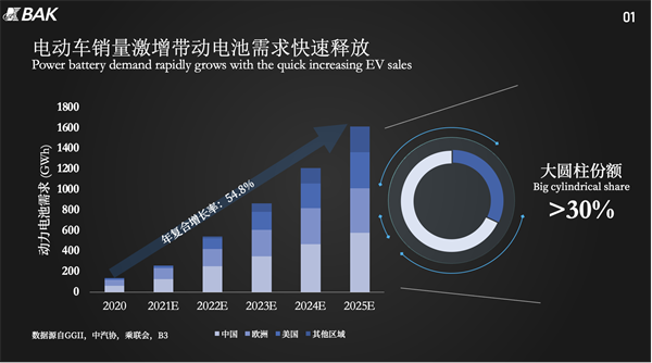 根據(jù)行業(yè)研究機(jī)構(gòu)EVTank統(tǒng)計(jì),2023年全球新能源汽車銷量達(dá)到1465.3萬輛,同比增長35.4%。新能源汽車銷量的激增,也帶動(dòng)了動(dòng)力電池需求的快速釋放。行業(yè)機(jī)構(gòu)預(yù)測,到2025年,全球新能源汽車市場對(duì)動(dòng)力電池的需求量將達(dá)1600GWh,自2020年到2025年的年復(fù)合增長率為54.8%。