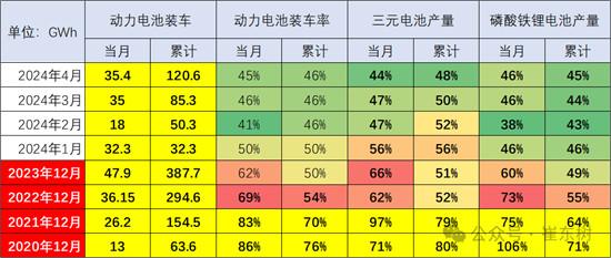 5月18日,乘聯(lián)會(huì)秘書長崔東樹撰文指出,目前動(dòng)力電池的產(chǎn)量中裝車的比例在不斷降低。2020年動(dòng)力電池裝車率達(dá)到76%,2021年是70%,2022年是54%,2023年是50%,2024年1-4月已經(jīng)降到了46%。
